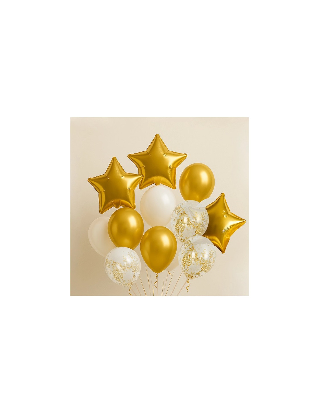 Crea una decorazione chic ed elegante con questo set di 12 palloncini dorati. Perfetto per un compleanno, un matrimonio o qualsiasi altra celebrazione speciale, ti permette di creare un bouquet raffinato che valorizzerà la tua festa.