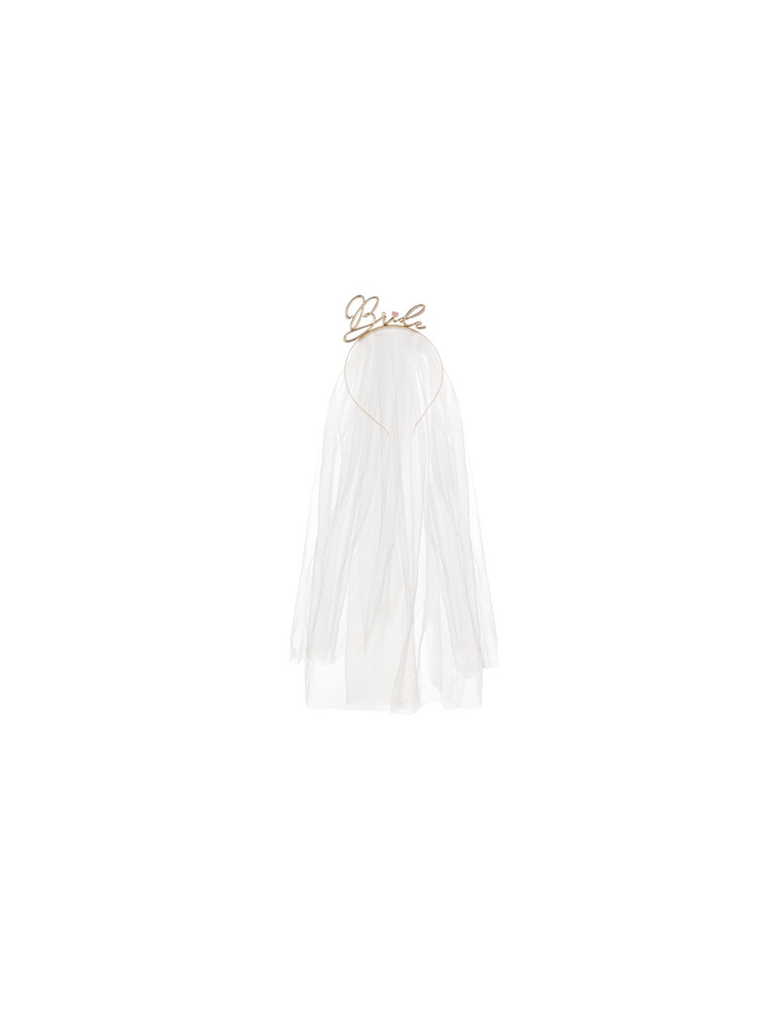 Fascia per capelli in metallo color oro con la scritta "Bride" e velo bianco, lunga circa 50 cm.