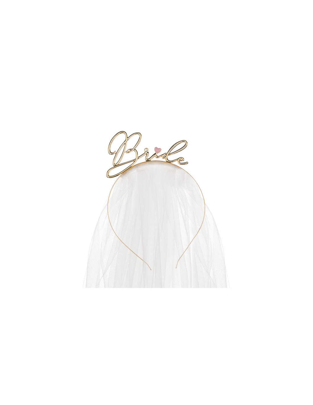 Fascia per capelli dorata con la scritta "Bride" e velo da sposa.