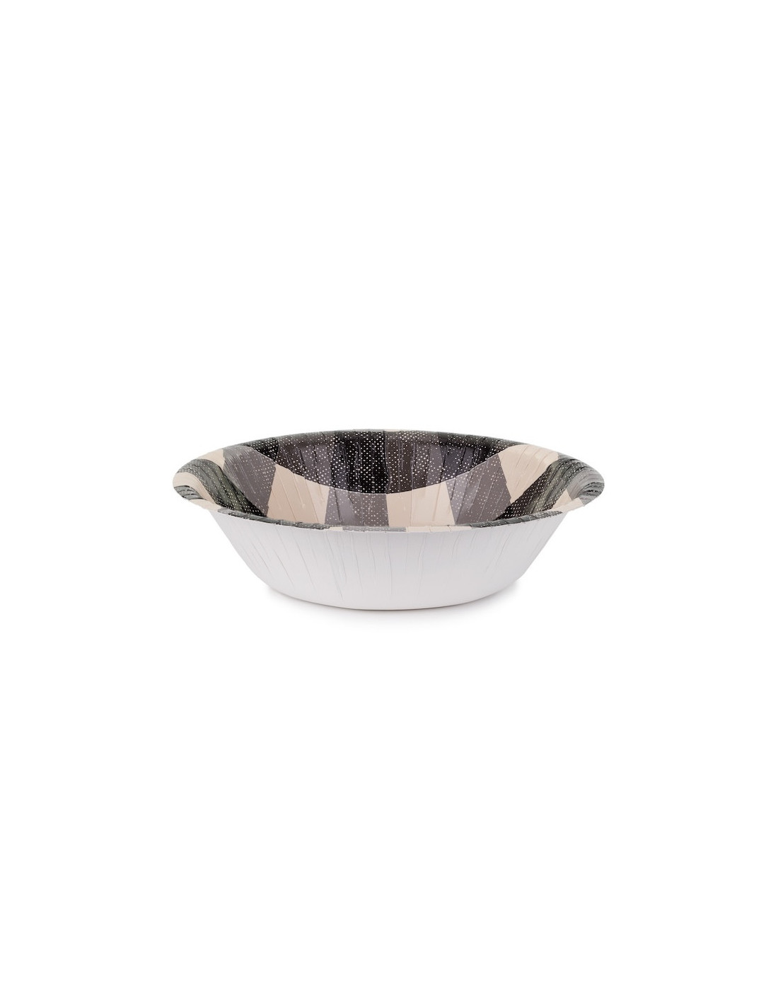 Servi i tuoi contorni con stile in queste ciotole di carta a quadretti neri. Perfette per un barbecue, un picnic o un buffet, sono ideali per presentare salse, snack o piccole porzioni in un'atmosfera informale e moderna.
