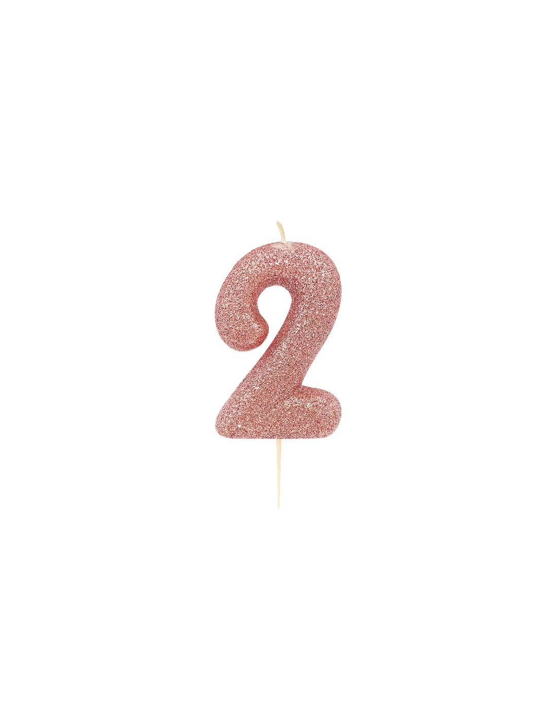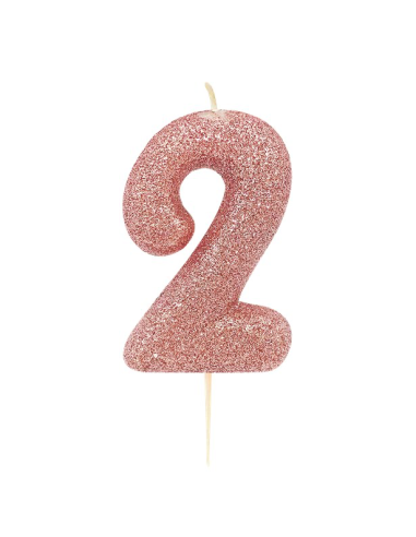 Candela Rose Gold numero “2” a paillettes – decorazione torta compleanno | BelleFete.ch