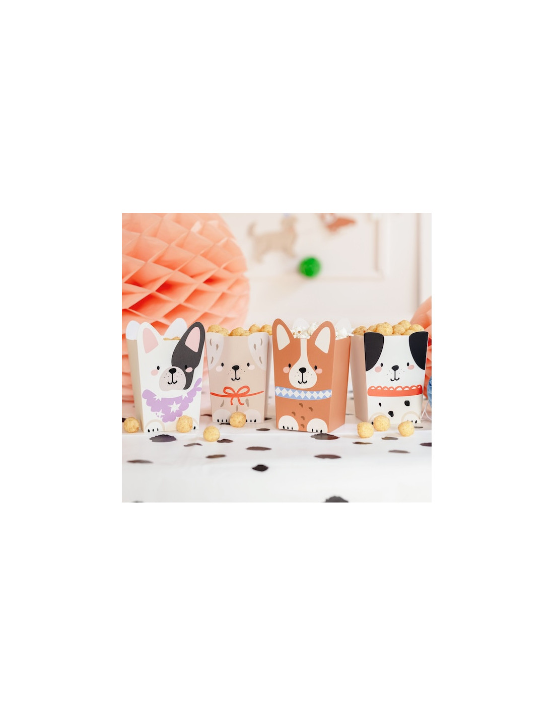 Aggiungete un tocco divertente e gustoso alla vostra festa con queste scatole di popcorn a tema cane.