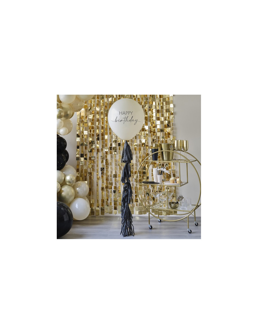 Questo palloncino color champagne per compleanno è dotato di una coda con pompon neri che renderà la tua festa ancora più speciale. Elegante e facile da montare, basta gonfiare questo palloncino color champagne con elio e infilare i graziosi pompon neri utilizzando il cordino incluso.