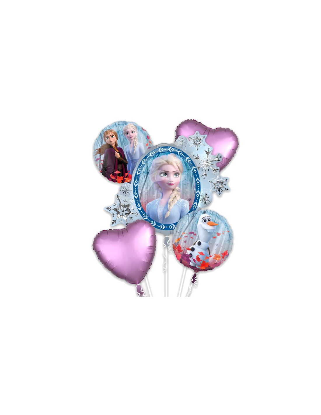 Questo grazioso bouquet di palloncini in lamina a tema Frozen sarà la decorazione perfetta per la festa di compleanno a tema "Frozen" di tua figlia.