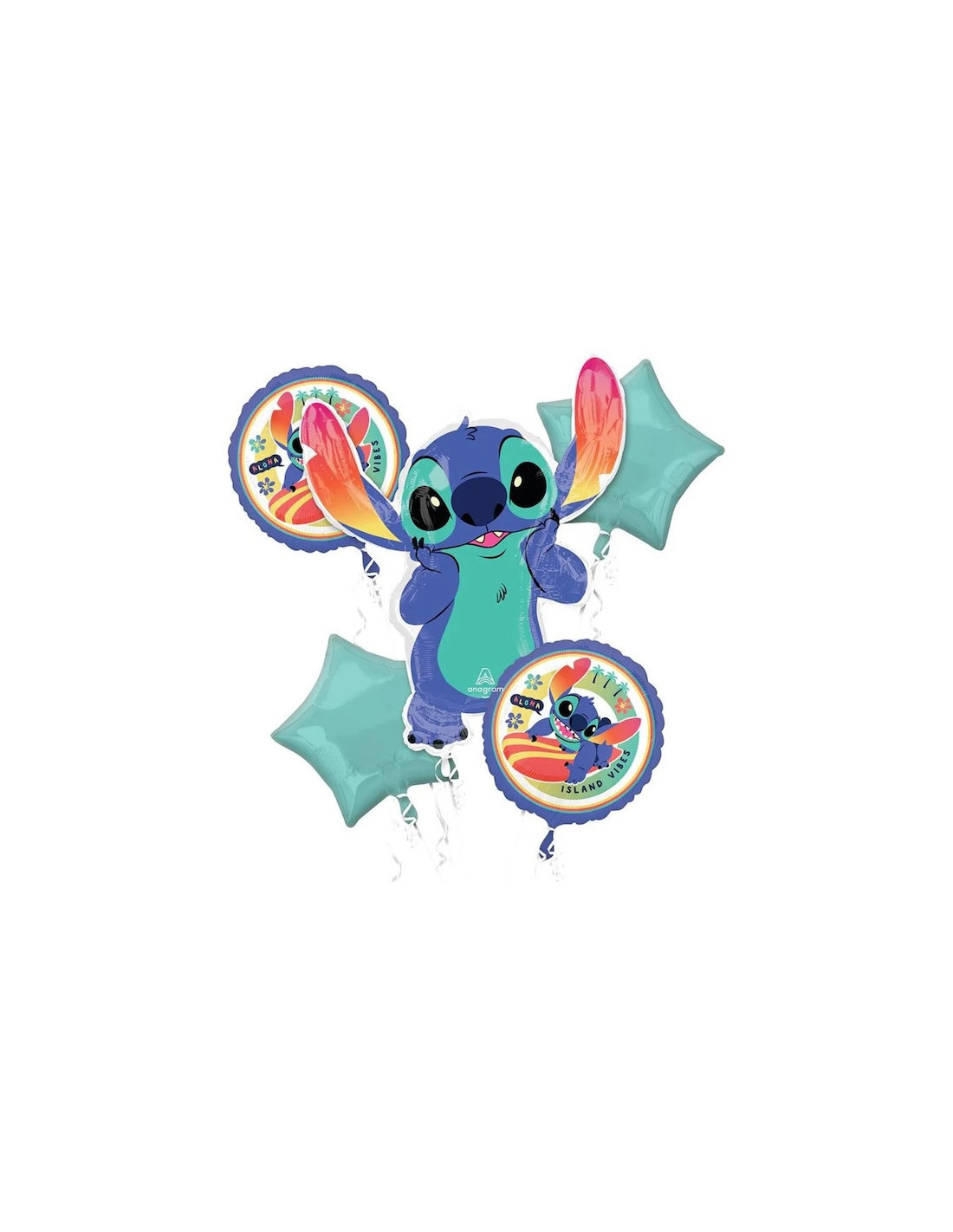 Trasforma le tue feste con il nostro magnifico bouquet di 5 palloncini raffiguranti Stitch, il personaggio Disney! Perfetto per tutti i fan Disney, questo bouquet di palloncini porterà un tocco di magia e divertimento a tutte le tue feste. Completa il look con la nostra collezione Stitch.
