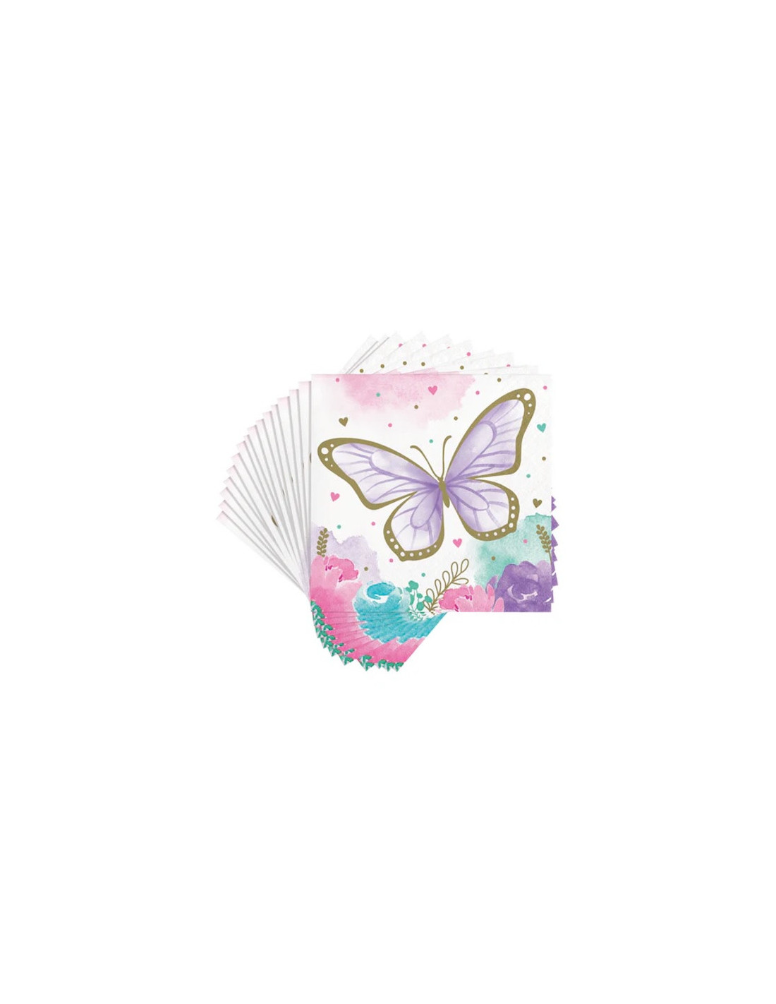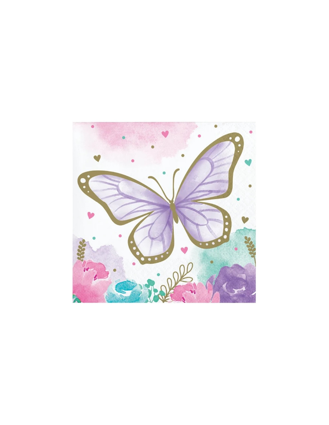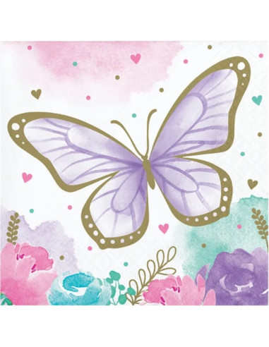 I nostri piccoli tovaglioli "Butterfly" sono il tocco perfetto per qualsiasi celebrazione a tema farfalle. Il design del tovagliolo presenta una farfalla viola e tenui toni pastello e oro.