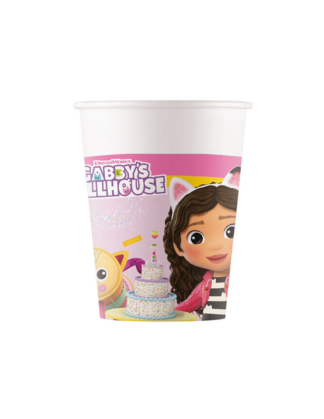 Completa la tavola con questi bicchieri da festa a tema Gabby's Dollhouse! Perfetti per una festa di compleanno a tema Gabby's Dollhouse, aggiungono un tocco colorato e giocoso all'arredamento, oltre a essere pratici per servire succhi, bevande o bibite gassate.
