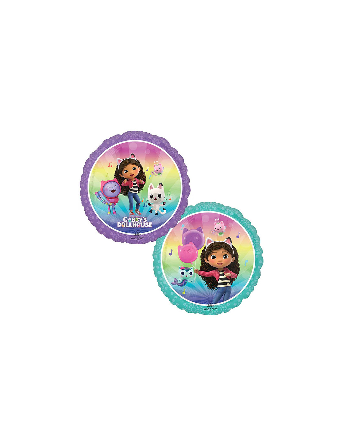 Aggiungi un tocco magico al tuo arredamento con questo palloncino in foil "Gabby's Dollhouse". Rappresenta Gabby e i suoi adorabili amici gatti, illustrati su uno sfondo arcobaleno multicolore, circondati da un bordo viola scintillante che catturerà sicuramente l'attenzione di tutti.