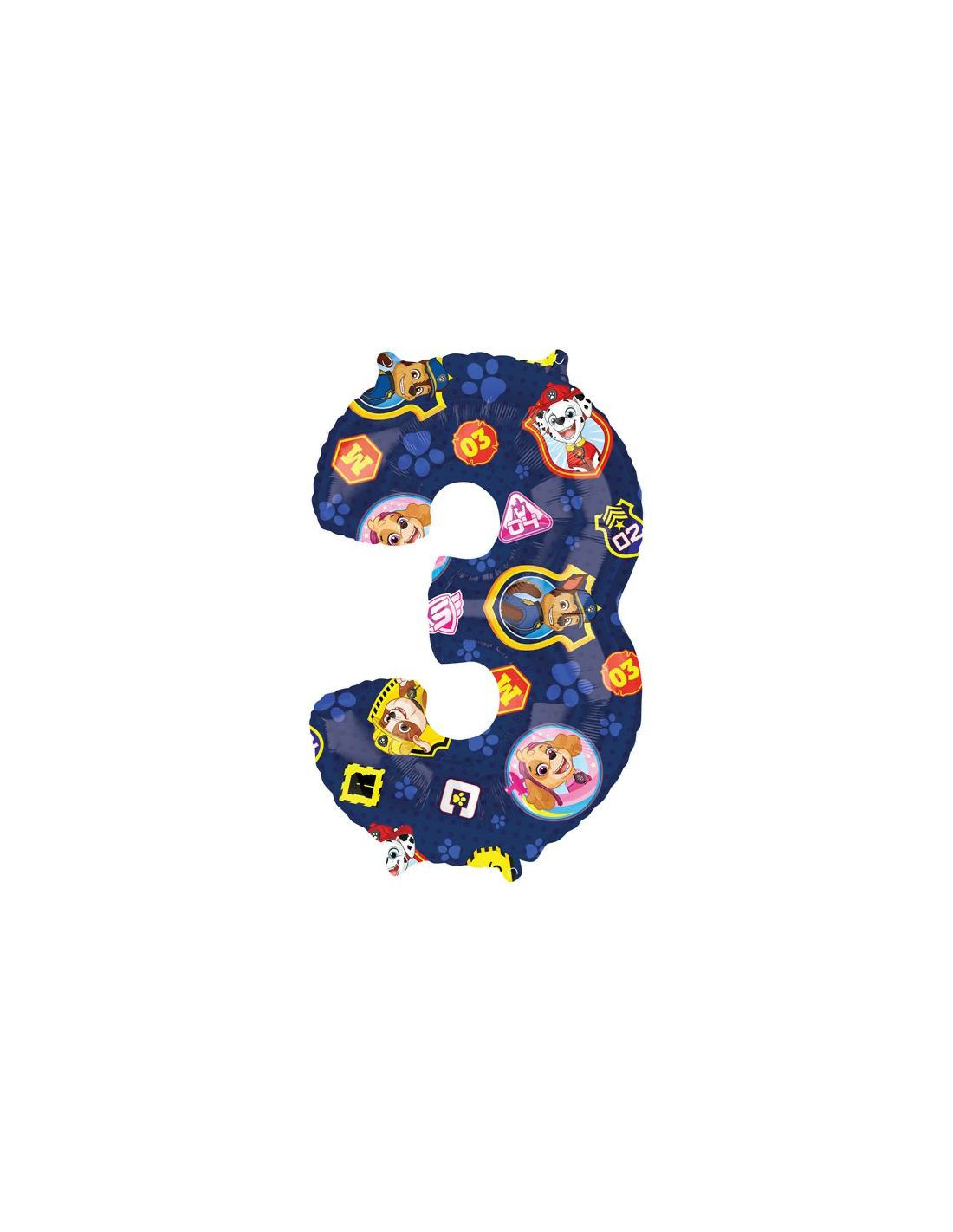 Grande palloncino per feste con il numero "3" della Paw Patrol