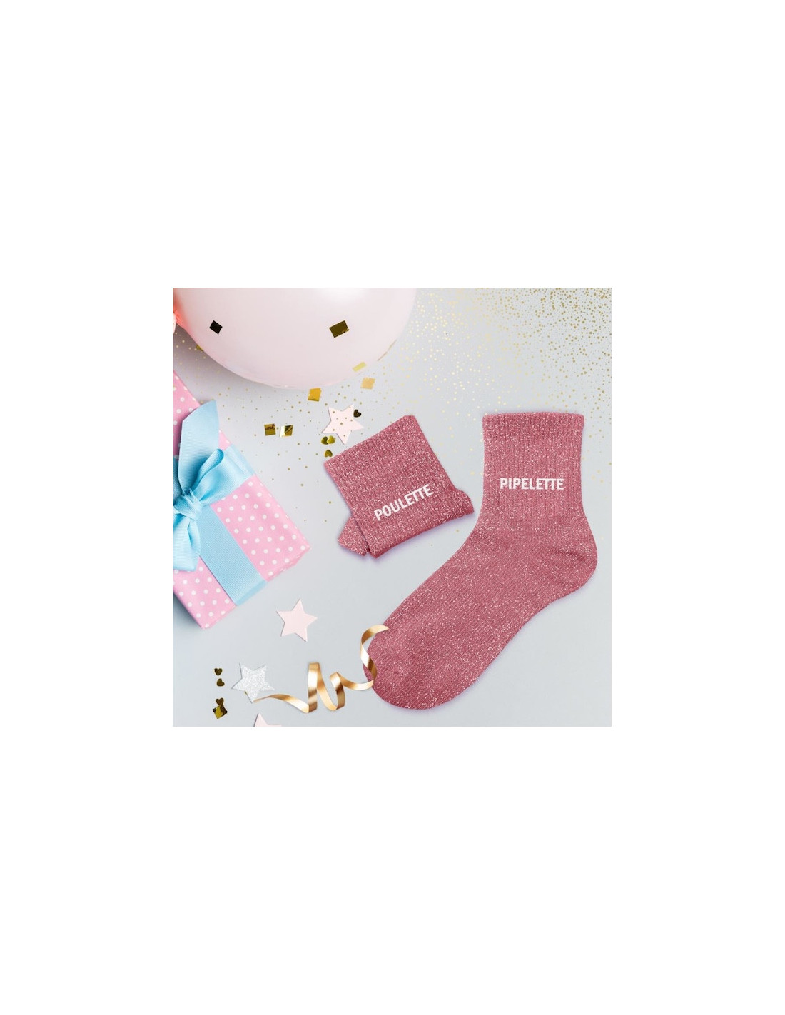 Calzini rosa con paillettes "POULETTE & PIPELETTE" | Regalo divertente | BelleFete.ch