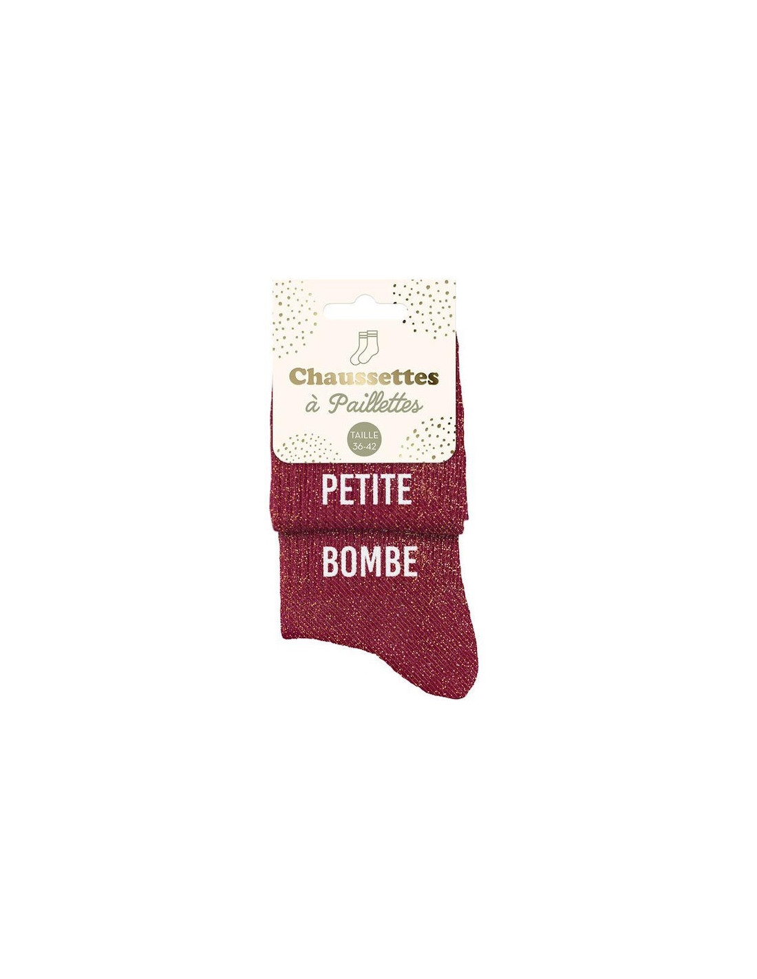 Aggiungi un tocco di brillantezza e stile con questi calzini Petite Bombe Duo bordeaux glitterati. Il loro design scintillante e il messaggio audace li rendono l'accessorio perfetto per completare un outfit unico o per un regalo di carattere.