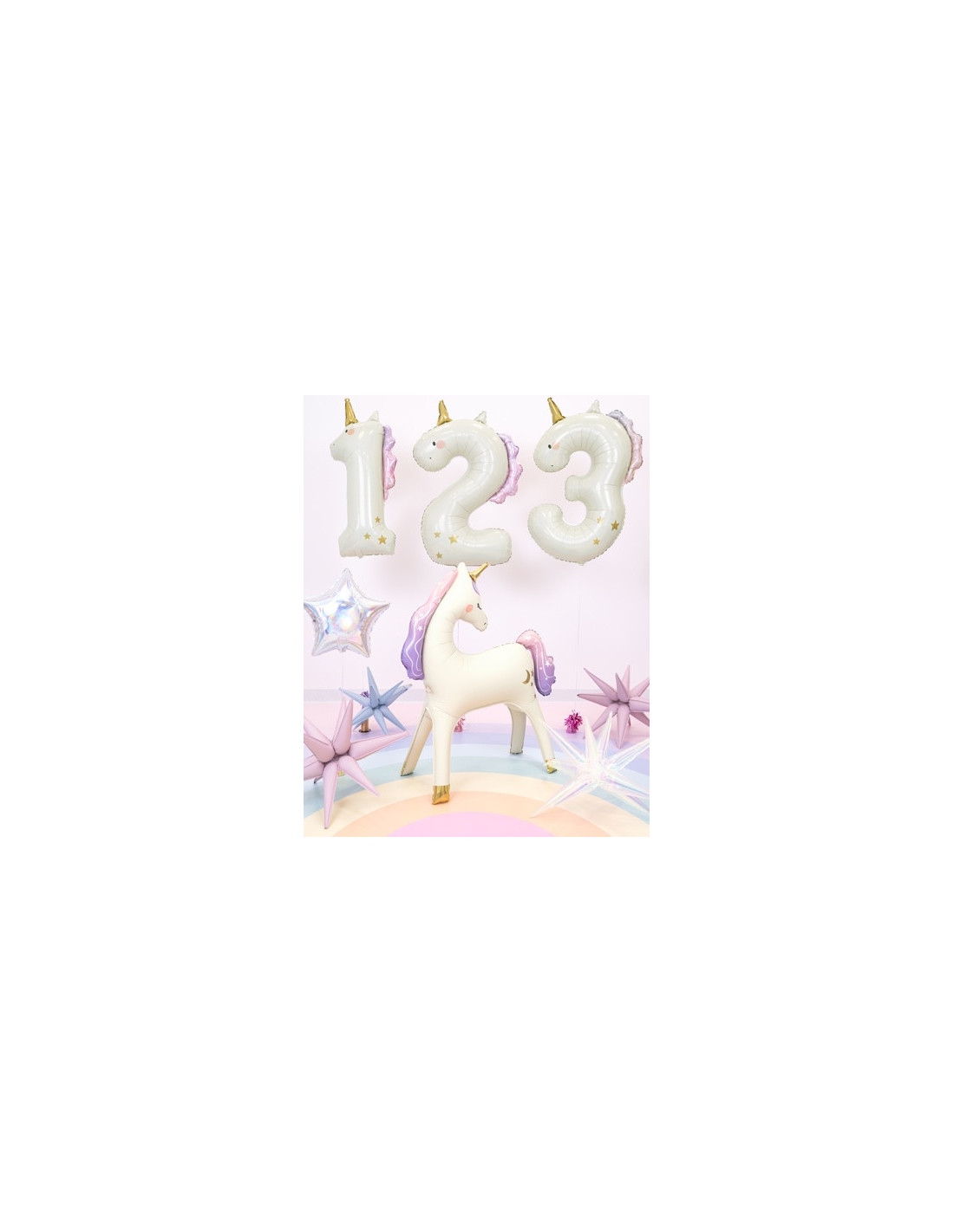 Aggiungi un tocco di magia alla festa con questo palloncino a tema unicorno con il numero "2", perfetto per festeggiare il compleanno di un bambino in un mondo da favola. Il suo design morbido e colorato delizierà i piccoli fan degli unicorni e creerà un'atmosfera gioiosa.