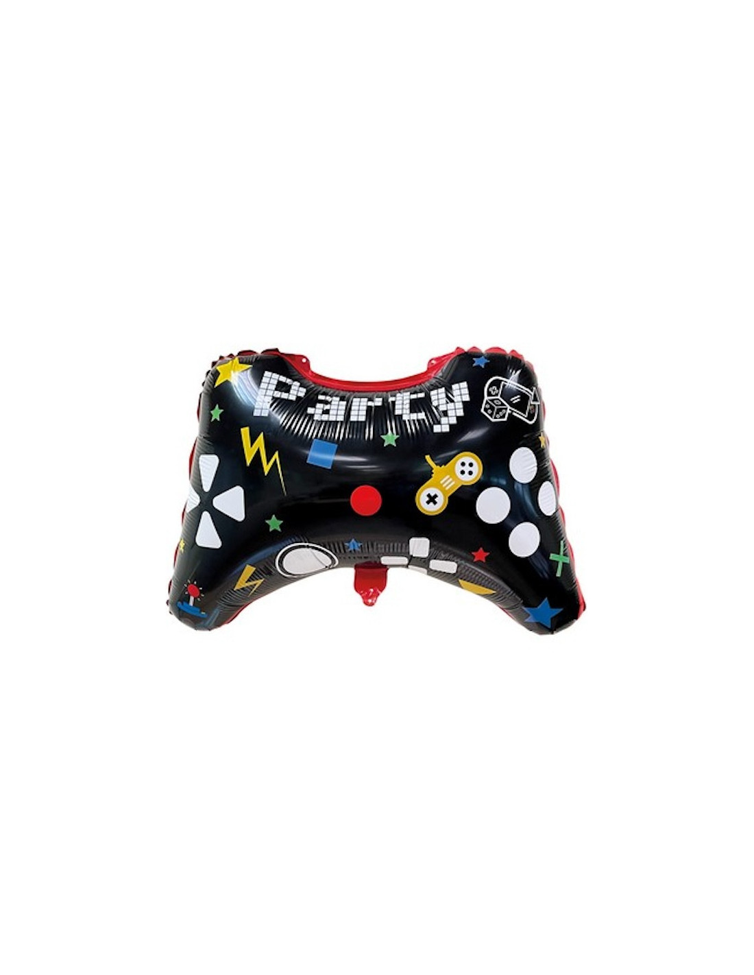 Questo grande palloncino in alluminio rappresenta un controller di gioco, con la scritta PARTY stampata sopra.